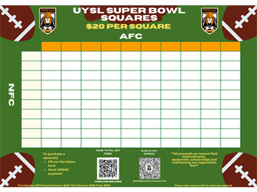 The UYSL is selling Super Bowl squares as our Winter fundraiser. Tickets are $20 per square and can be purchased via this form.